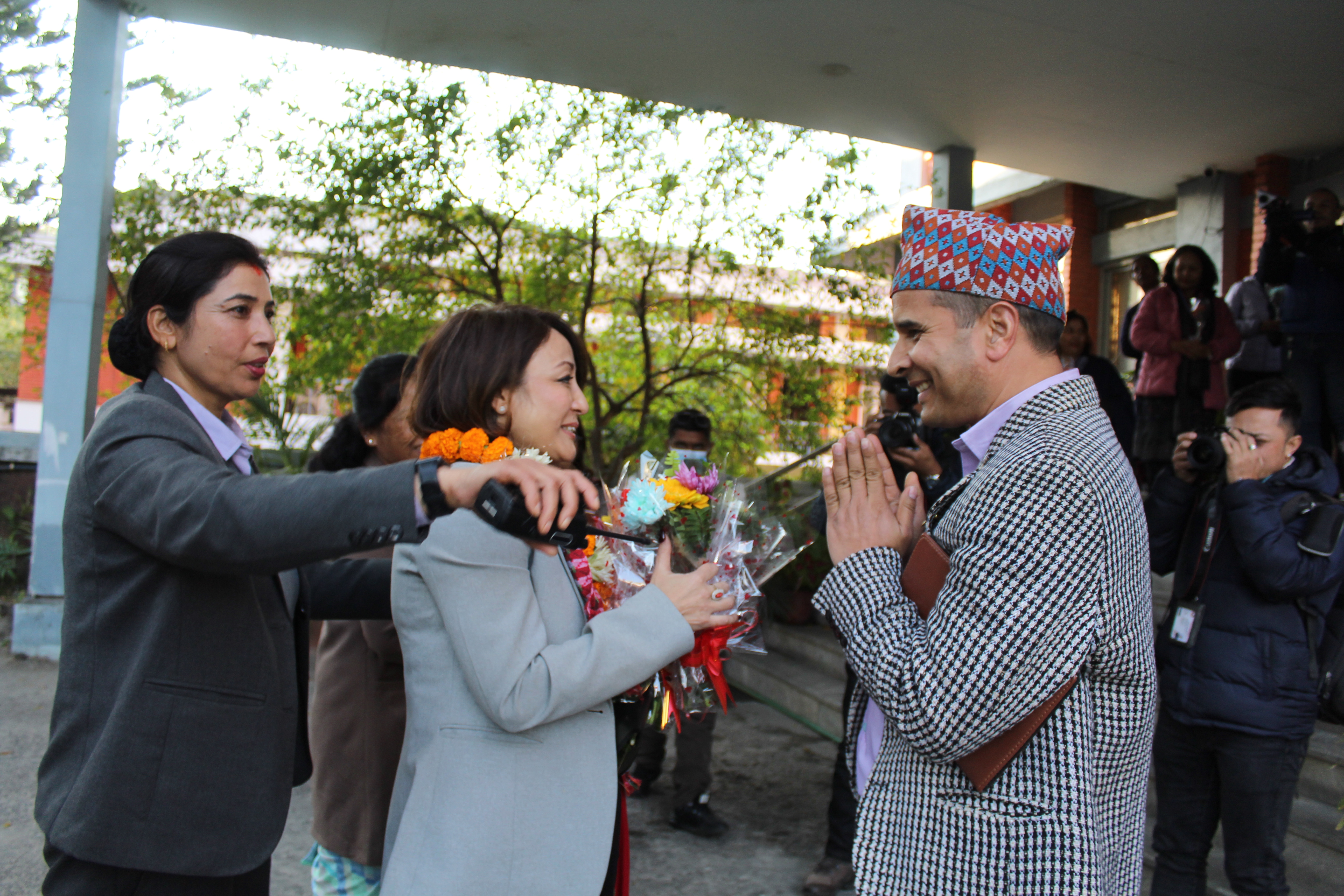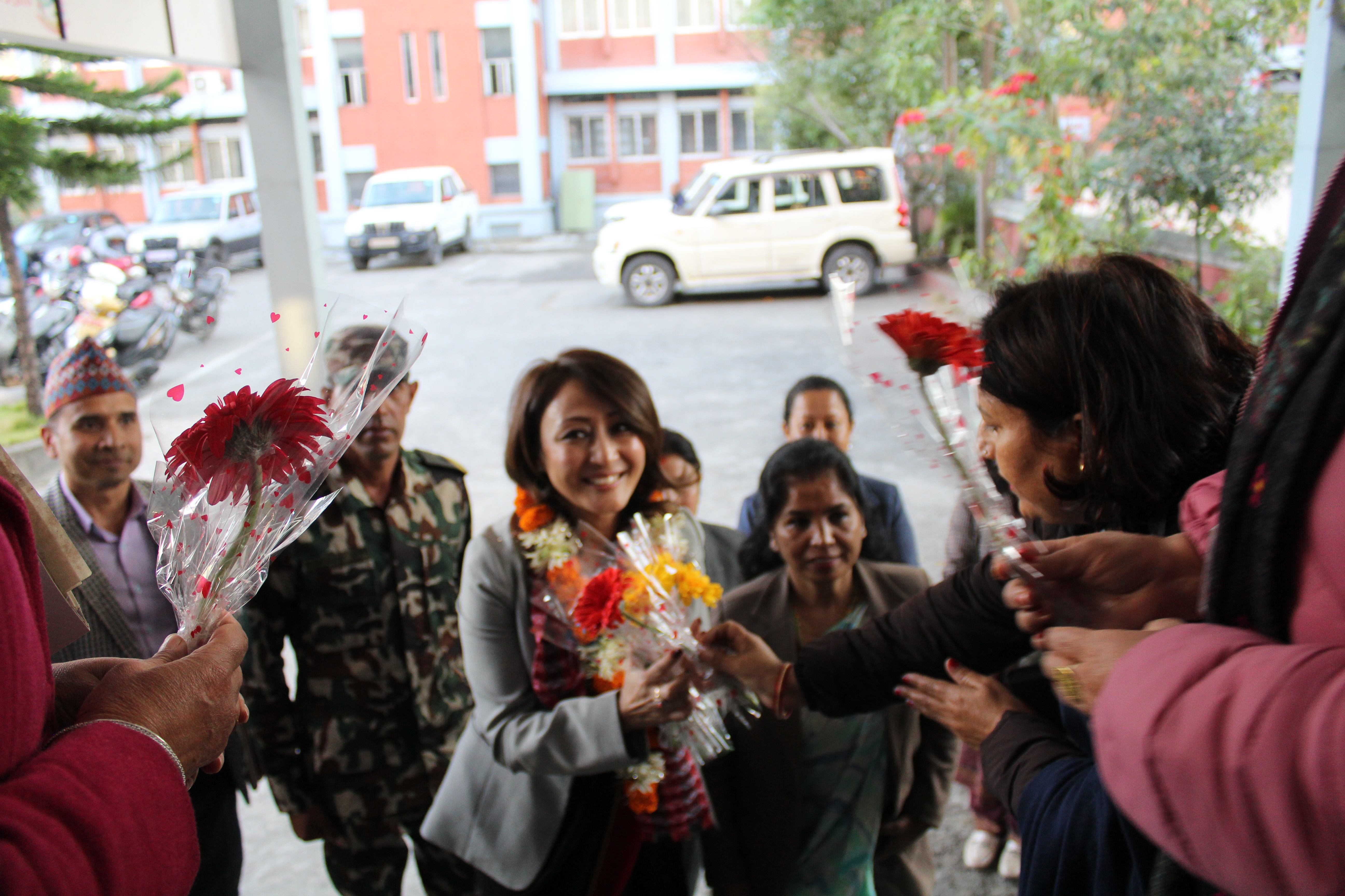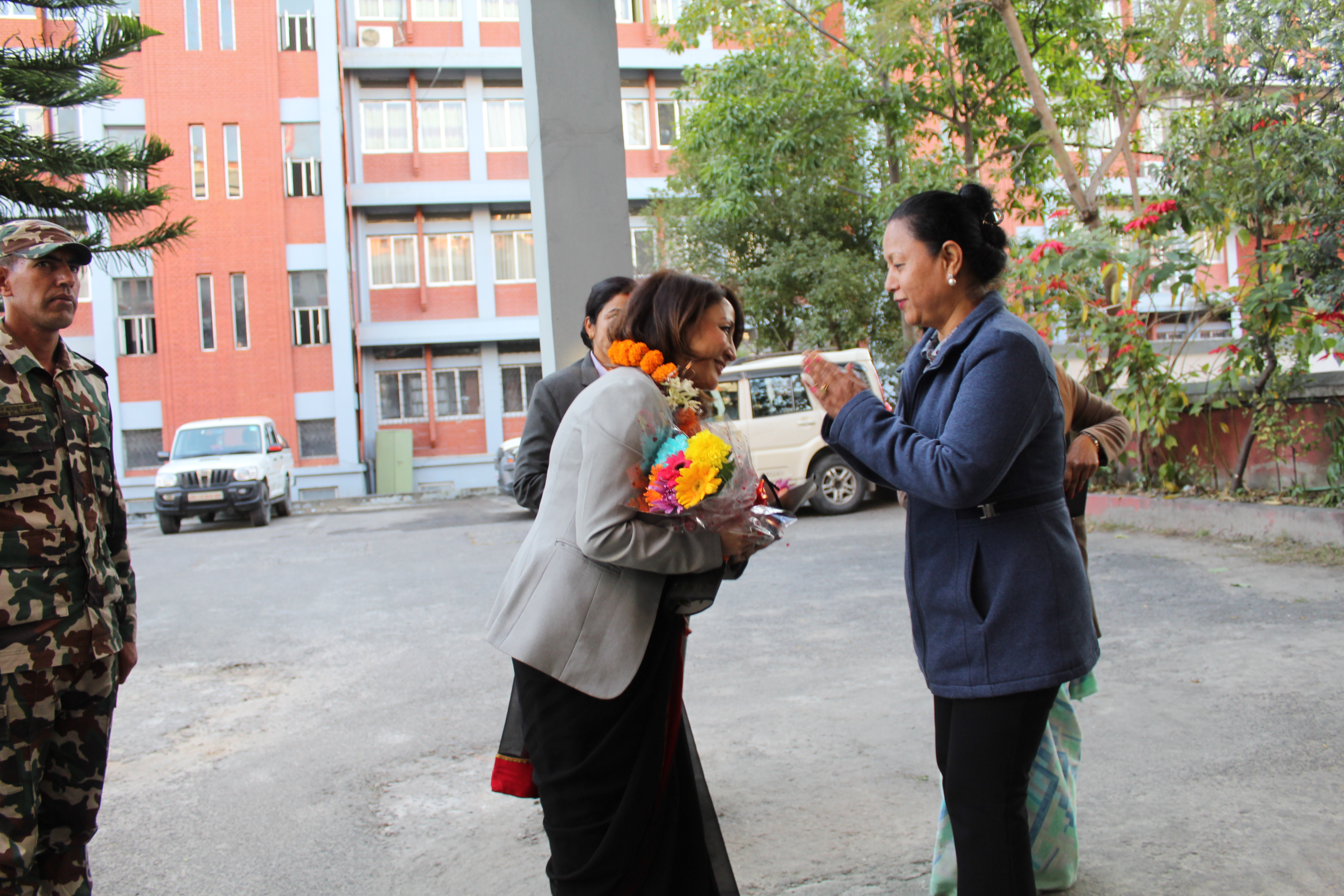 माननीय महिला, बालबालिका तथा ज्येष्ठ नागरिक मन्त्री श्रद्धा श्रेष्ठज्यूलाई मन्त्रालयमा स्वागत गरिदै